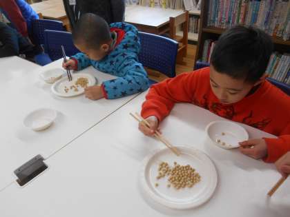 豆つまみ大会に向けって、練習をしていました。1年生にとっては、どんなことかわからないので、イメージをもって本番を迎えることと思います。お箸の持ち方にも気をつけていくきっかけとなります。