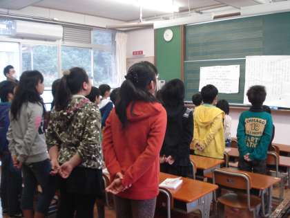 朝の音楽集会では卒業式で歌う全校合唱の練習をしています。今日はほたるの光とスマイルアゲインの2曲を練習しました。サ行の言葉をはっきり発音すること、母音の「い」と「え」の音を美しく発声する方法などを練習しました。卒業式には美しい歌声を響かせてくれることでしょう。