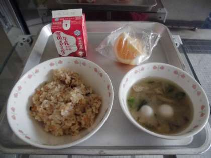 炊き込み五目ごはん 牛乳 みそ汁 はっさく