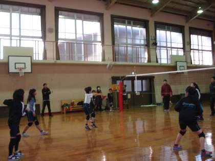 バレーボール部の6年生の卒業をお祝いしようと、子どもチームと教職員チームでバレーボールの試合を行いました。初めは大人チームに圧倒されていた子どもチームでしたが、徐々に調子が上がってきてサーブを決めたりアタックを決めたり、大盛り上がりのひと時でした。やっぱり子どもたちは元気です。