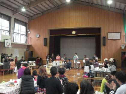 PTA主催の歓送迎会が行われました。離任した教職員、着任した教職員をお招きし、楽しいひと時を過ごしました。恒例の静原小学校の様子の紹介のスライドショーや家族紹介などが行われ親睦を深めることができました。いろいろとご準備いただきありがとうございました。