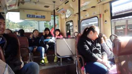 公共交通を利用して移動中です。