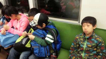 公共交通を利用して移動中です。