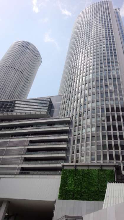 名古屋到着。いっぱいの人と高いビルです。