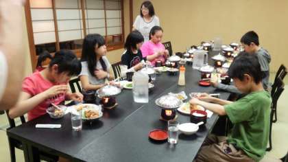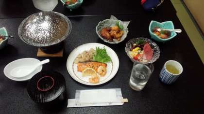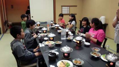 お楽しみの夕食です。ごちそうが並んでいます。