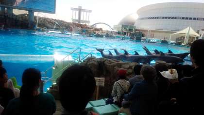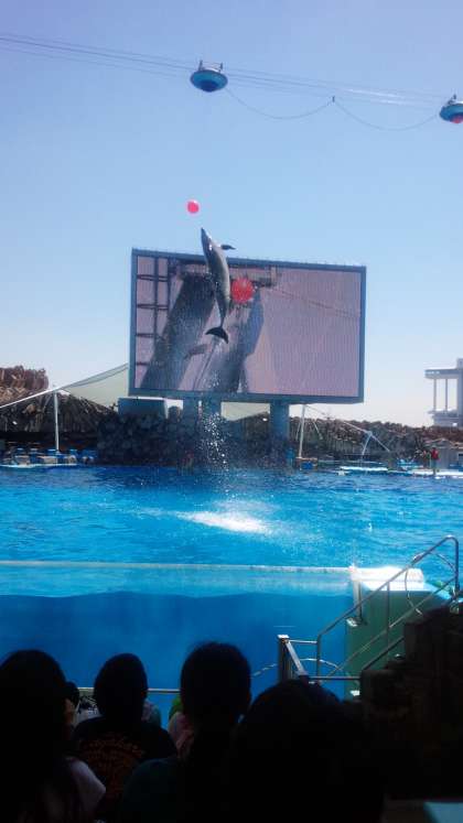 名古屋港水族館の一番のお楽しみ、イルカショーです。迫力のあるジャンプを見せてくれました。