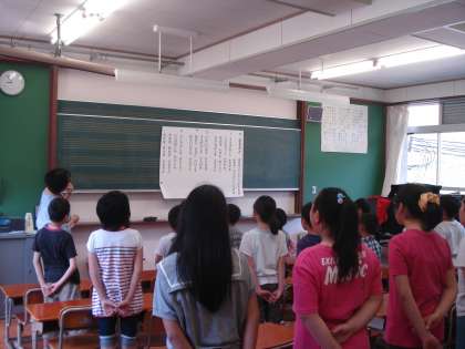 今朝は音楽集会が開かれました。練習した曲は「ふるさと」です。歌詞の意味を教えていただき、初めからしっかりした声で歌えていました。6月7日に行われる創立140周年記念行事で地域の方と一緒に歌おうと思っています。