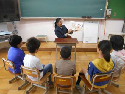 読み聞かせの日です。葵祭りについての事が書いてある本の紹介もしていただきました。季節感のある話で、静原と関係の深い神社の事でもあり、また、校内に生えている葵の葉や桂の木がお祭りに使われていること等再認識できました。