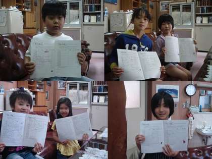読書ノートをもって校長室へ来てくれる人が増えてきました。中には担任の先生と競って読んでいたり、もう50さつをこえていたりする人もいます。今年は50冊ごとに、おすすめの本を全校に紹介してくれることになっています。その発表も楽しみです。