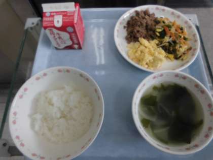 ごはん 牛乳 ビビンバ(具) わかめスープ
