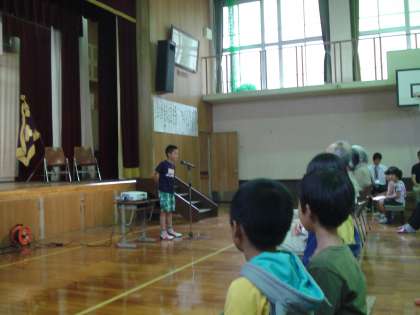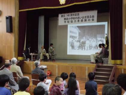 日曜参観の4校時に創立140周年記念の会を2つ行いました。第1部は静原の思い出を語る会です。静原小学校の卒業生の方に写真をお借りし、その写真を見ながら当時の様子をふりかえり、静原小学校の歴史をたどりました。