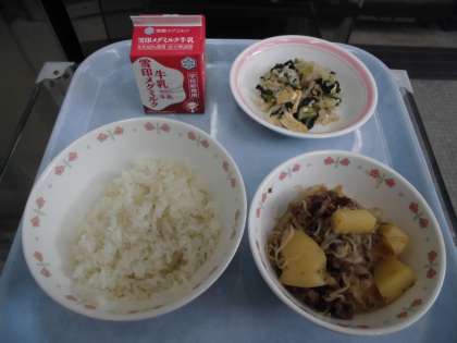 麦ごはん 牛乳 肉じゃが 切干大根の煮つけ 黒大豆