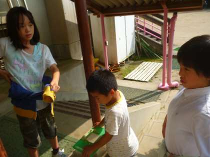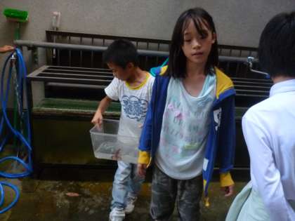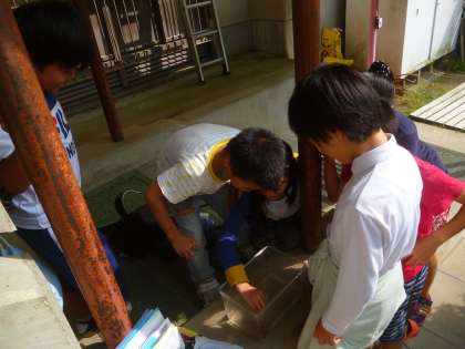 今日の放課後4年生数名が外階段付近で何かをしていました。気になって見に行くと,教室で飼っているザリガニの水を交換していました。自分たちが育てているザリガニはしっかりと自分たちで管理することができています。途中で他学年児童も気になったみたいでいつのまにか集まっていました。