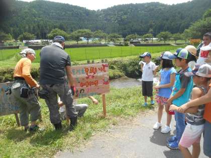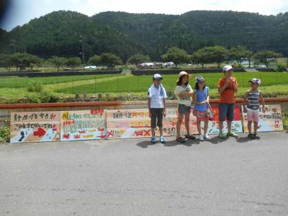 「静原川にごみを捨てないでください」の看板をPTAの協力のもと設置できました。看板作製にあたっては、自治会、農と環境を守る会等の方々の協力も得ています。児童が、きれいな静原川にするためにはどうすればいいのか考えて以前にも看板を設置しましたが、地域の方々より看板も傷んできているので、次の看板設置をしてはどうかという声をいただき、作成〜設置となりました。静原川は、きれいな川ですが、ゴミ拾いを毎年しているとたくさんのゴミを拾うことができます。何とかしたいという児童の思いのもと話し合いやお願いや協力により、活動が進んでいきました。