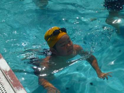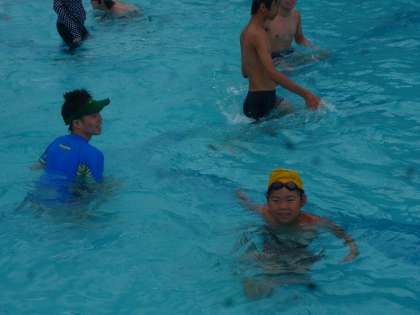 今日は支部合同の水遊びがありました。今年は,中学生も参加して,ビート版でのリレーをしたり,みんなで水中おにごっこをしたりととても楽しい時間を過ごすことができました。中学生の泳ぎを見て,「かっこよかったです」と言った感想もしっかり言えました。