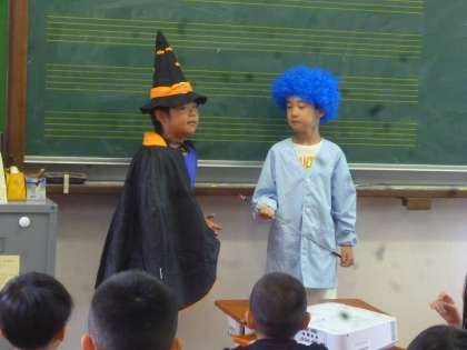 今日は3年生の食育発表でした。今年は「ジャガキュラ」と「ジャガ博士」になり,じゃがいもの育ち方や栄養について,寸劇を加えながら発表しました。自分たちで相談しながら,台詞を考えたり,ジェスチャーを入れてみたりと,主体的な発表ができました。ジャガイモのことなら3年生の2人に聞いてみて下さい。