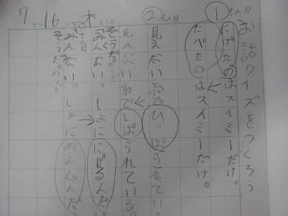 クイズの内容は,本の文章を変えて,どこが変わったかを当てるものです。細かい内容をクイズにする人もいましたが,それでも正解する子どもがいて,お話をしっかり読んでいることが分かる時間でした。