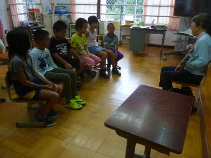 今日の朝学習は,地域の佐々木さんに来ていただき,読み聞かせをしていただきました。本のタイトルは「目黒のサンマ」でした。おもしろいお話でみんな笑ったり,おどろいたりしながら聞いていました。その後,夏休み中に佐々木さんが旅行に出かけられて体験したことや感じたことをお話ししていただきました。動物も親が愛情を持って子育てをしているということをお話ししていただきました。人間もそうですよね。「みんなも生まれてからたくさんの愛情をもらってここにいるんだよ」という話をそえました。一人一人の感想にもていねに言葉を交えながら答えてくださいました。とても貴重な時間となりました。