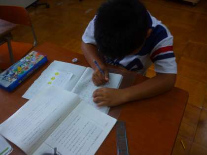 夏休み明け,2組では,「字をていねいに書く」ことを意識しています。また,黒板の字をノートにしっかりと書き写すことも心がけています。ただ,ノートに書くだけではなく,「ていねいに」という意識を持つことで,ていねいに,速く字がかけるようになります。今日の理科の学習中,隣のクラスの先生にも,「ていねいな字だね」と褒めていただきました。がんばっていることをしっかり見ててくれる人がいる。それが,次への意欲にもつながります。