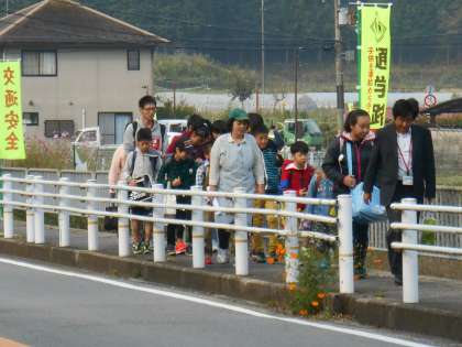 元気に歩いて登校する姿が素晴らしいです。当たり前のことですが、しっかり歩いて学校に行く、みんなと挨拶をして、みんなと整列して、歩く。人とコミュニケーションをとることの入り口でもあります。