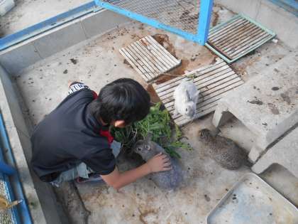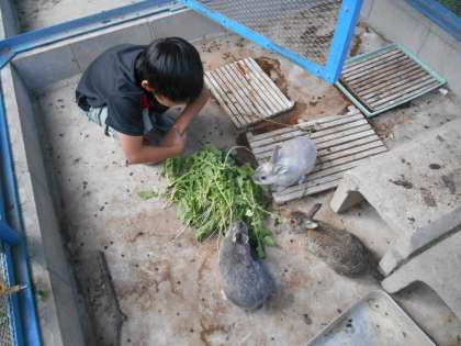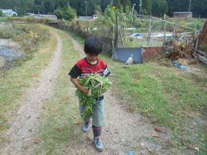 大根のまびき菜をうさぎにやりました。ウサギは喜んで食べていました。