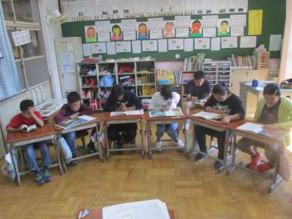 今週は読書週間です。昼の帯時間にみんなで集中して読書をしています。国語の授業と関連して宮沢賢治の作品を多くの子が読んでいます。