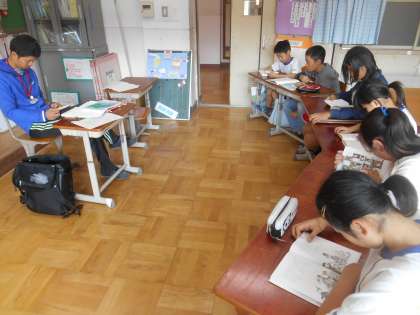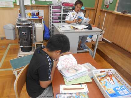 先生も一緒に本を読みます。