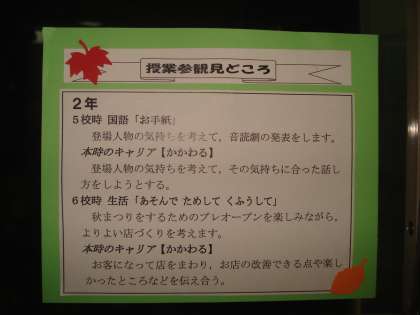 10月の参観日 2年生