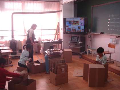 4年生は、図工と国語に取り組みました。図工「べんりなマイボックス」では思い思いの段ボール箱を組み合わせたり、切り取ったりして自分が使いたい引き出しを作りました。国語では、「だれもがよりよく関わり合う」の学習で、一人一人課題を決めて、ポスターを作り、その作品をもとにポスターセッションを行うことができました。