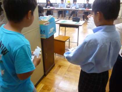 今日の3・4時間目に大原学院に行き,交流学習を行いました。まず,大原学院の案内をしていただきました。広い体育館や廊下におどろいていました。その後,教室で「静原」と「大原」について,それぞれが調べたり体験したりしたことを発表し合いました。そして,お互いの発表を聞いて感じたことを交流しました。相手意識を持って,発表に向けて練習をしたり,新しい土地の様子を聞いて,自分の視野を広げたりと,この学習を通して高まる力はたくさんあると感じました。「次は静原を案内したい」という意見を言う等,この学習への意欲の高まりを感じました。