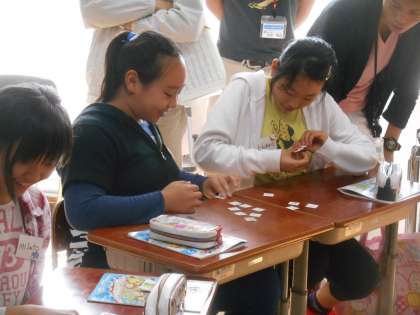 後のコミュニケーションをとるときの英語の表現について、ゲームを通して楽しく声に出す取組をしていました。