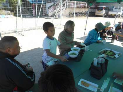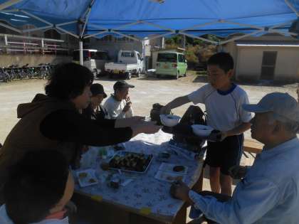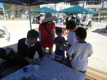 お客様へお運びをしています。「どうぞ」とか「いかがですか」と声をかけていました。