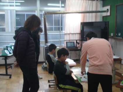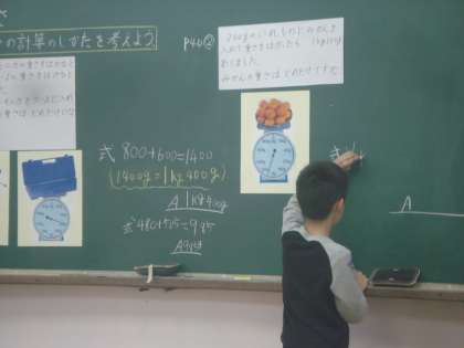 3年生は、国語「三年とうげ」「漢字の広場」算数「重さ」「かけ算のひっ算」図工「紙版画」の学習に取り組みました。図工の時間は参観されておられる保護者の方ともお話ししながら楽しく活動を進めていました。