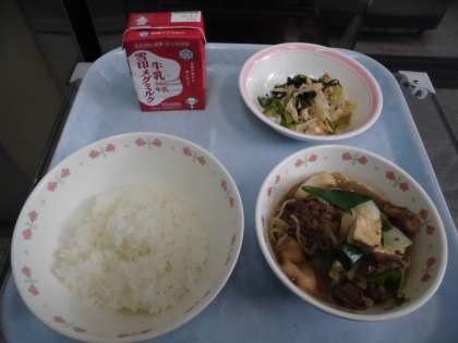 ごはん 牛乳 すきやき風煮 小松菜と切干大根の煮びたし
