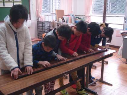 平成28年最初のそろばんの授業が行われました。今日は年初めということで、129ケタある長いそろばんを持ってきていただき、6人一斉に「はじき初め」を行いました。子どもたちが通常使っているそろばんの7本分にあたる長さで、子どもたちは驚きの声をあげていました。一斉に読み上げ算を行い、しっかり計算していました。答えが2016になる問題もあり、楽しい時間を過ごしました。