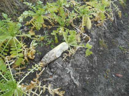 柵が破られ、大根をかじられました。まわりの畑の柵がなくなり、鹿の来やすい状況になっていたことが原因として考えられます。