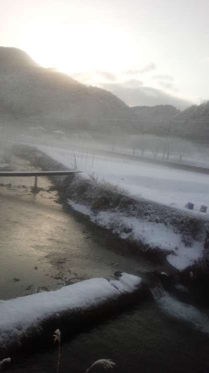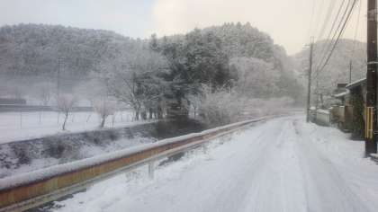 大雪の翌日。街の雪はほとんど消えたようですが、静原の朝は、まだ白く冷たく美しい様子です。
