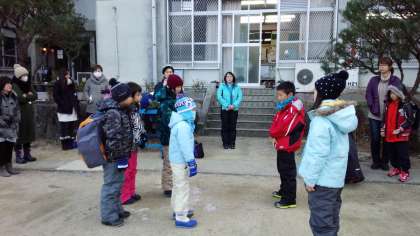今日から3日間、山の家の宿泊学習に行きます。出発式です。お見送りありがとうございました。