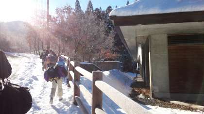 山の家に到着しました。雪は、たっぷり、ありました。予定通りの活動が十分にできそうです。