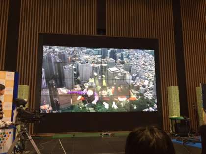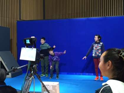 クロマキー体験をしました。真っ青な背景を前にして撮影し,好きな背景や映像と合成できるという技術です。クオリティの高さにみな驚いていました。