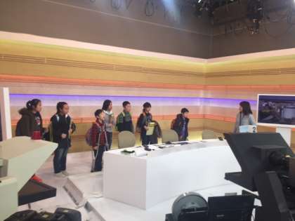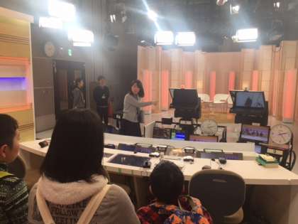 実際のスタジオの見学もさせてもらいました。ロボットカメラで撮影していたり,時計は正確な時間をしっかりと確かめるために様々な場所に様々な角度で配置されていたりと発見の連続でした。