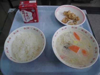 減量ごはん 牛乳 たらのこはくあげ 豆乳鍋