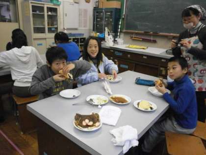 今週の文化クラブでは,クレープ作りをしました。2つのグループで,高学年児童が上手に,中学年児童に支持を出したり,それぞれが自分の役割を考えながら動いたりしながら,おいしいクレープを作りました。作った後はもちろんみんなで,おいしくいただきました。また,ご家庭でもお子たちといっしょにクレープ作りをしてみて下さい。