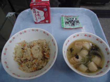 炊きこみ五目ごはん(鶏ごぼう) 牛乳 みそ汁 黒大豆