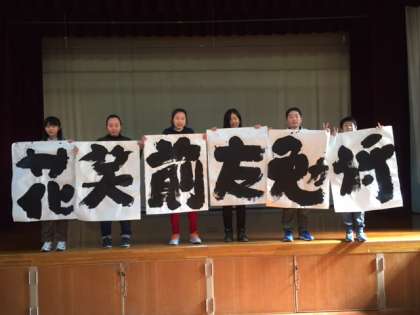 書道教室で書いた字の中から自分のお気に入りの字を選びました。それぞれに意味が込められています。