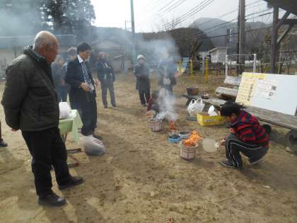 七輪で、モチを焼いたり、お茶を沸かしたりできるようになリました。そのために、地域の方に教えていただいています。その他いろいろなことで地域の方にお世話になっています。これらの方々をお招きして、感謝の気持ちを伝える取り組みです。