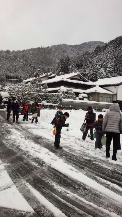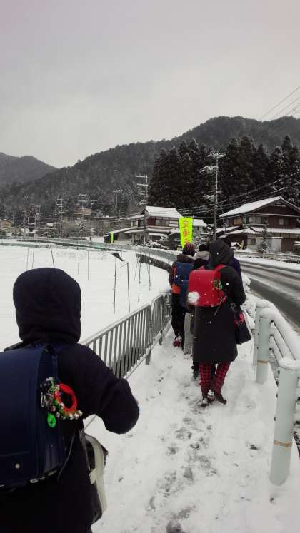 昨日雪が降っているのを見ていた時は、こんなに積もるとは思っていませんでした。子どもたちは集まるとすぐに雪を投げ合っていました。ひょっとしたら6年生にとって最後の雪道の集団登校になるかもしれません。
