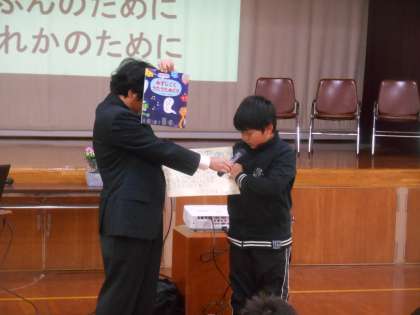 年度末になると、読書100冊達成が一気に増加します。1年を通して本に親しむことができたからです。お勧めの本の紹介もしました。本の紹介は、「9」の物語、お話に分類されるものが多く、児童も、お話をよく読んでいるようです。この日は、「5」の分類でLEDについての本を紹介する児童もいました。いろいろなジャンルの本を読んでいけるよう、本の紹介や、冊数整備等していきたいです。