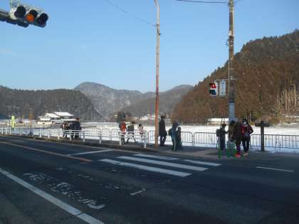 前日に、雪の中を登校したとは思えないほどの日差しの中を登校しました。田んぼの雪は残り、気温はマイナスと冷え込みましたが、日差しの角度は、大分高くなってきています。