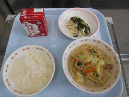 減量ごはん 牛乳 チャンポン 切干大根のいためナムル